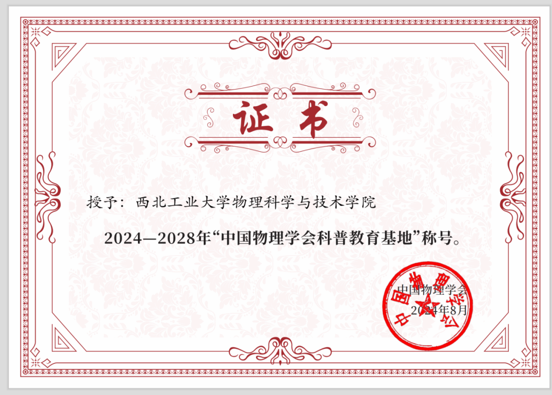 威廉希尔官网将以“中国物理学会科普教育基地”建设为契机,不断结合学科发展的优势方向,整合省部级重点实验室和基础物理教学平台等科研和教学资源,打造具有西工大特色的物理科普教育体系;通过师生共建和融合创新,扩大科普基地人员队伍,丰富科普主题内涵,面向校内外讲好具有西工大特色的物理学科故事。进一步推动国家科普能力建设,促进全民科学素质的提高,为推进中国式现代化凝聚起强大的创新力量。