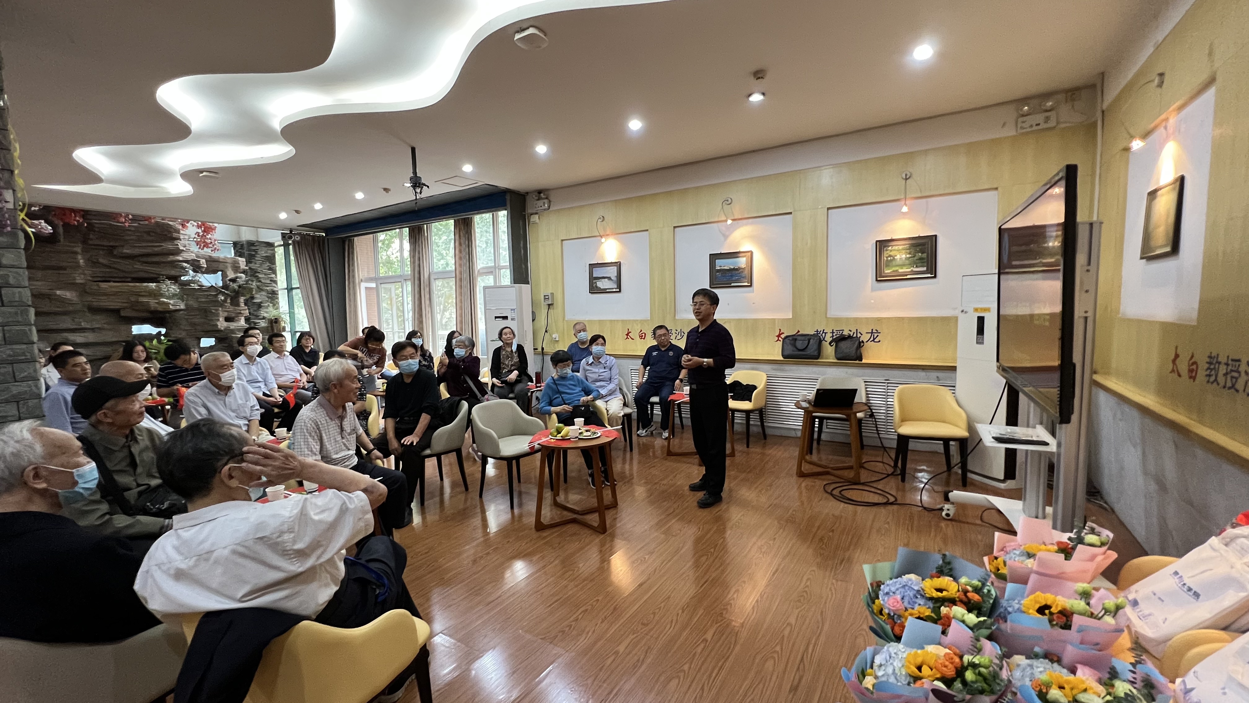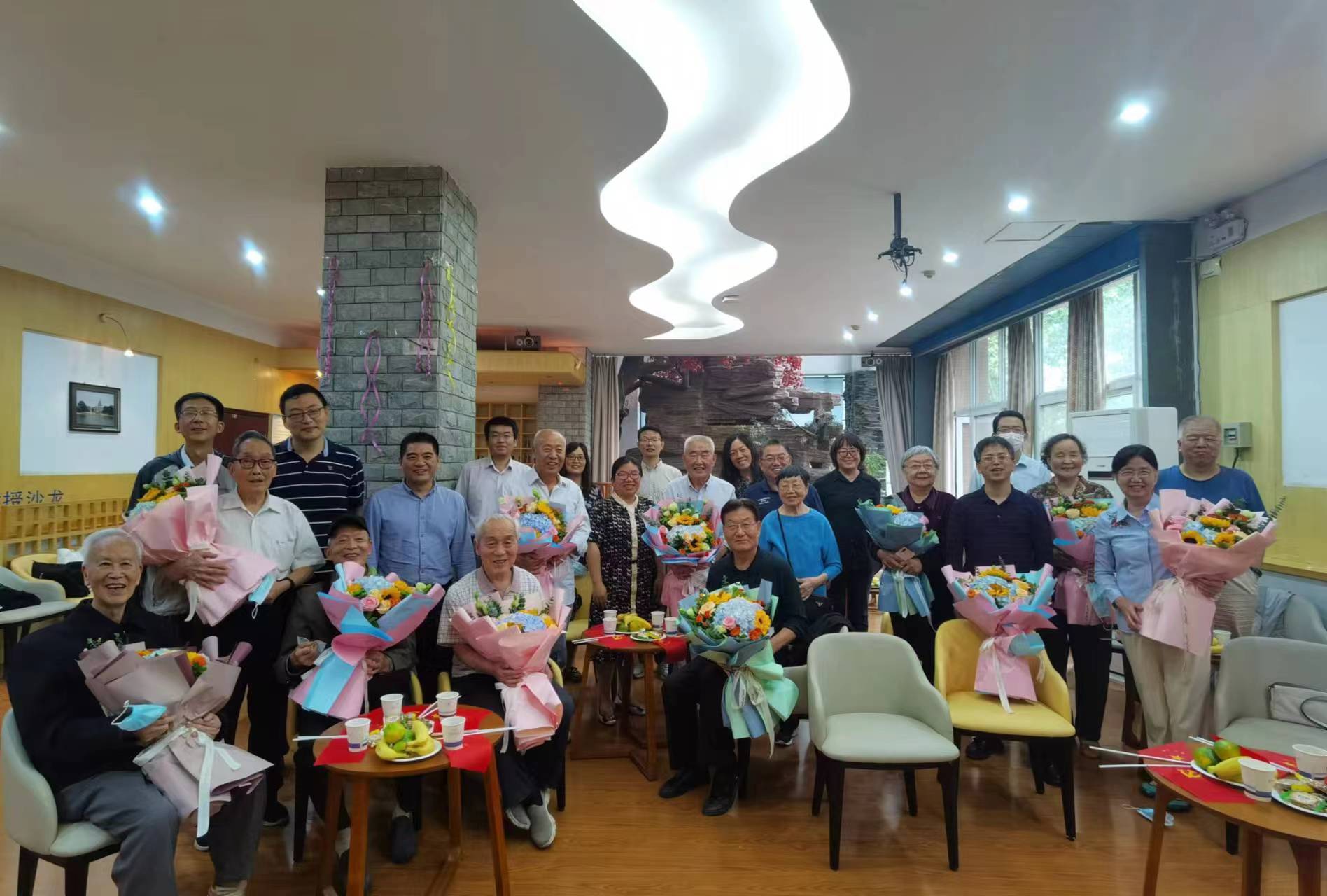 最后,学院中青年教师代表向离退休老教师们送上鲜花和祝福。离退休老教师怀着对学校、对学院满满的深情,踊跃发言,共同回忆学院发展的光辉历程,感慨学院近年取得的丰硕成果,他们对学院领导给予的无微不至的关怀表示由衷的感谢,纷纷表示会继续发挥余热支持学院工作,为推进学院各项事业高质量发展贡献力量。中青年教师代表也表示离退休老教师们对学院事业艰苦奋斗的奉献精神始终激励着他们再接再厉、奋发向上,在未来将继续传承学院老教师们的优良作风,保持艰苦奋斗的精神,全力推动学院工作高质量发展。